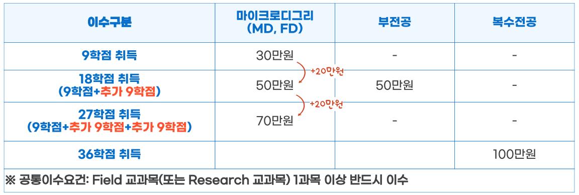 - 마이크로디그리·복수전공·부전공 이수 완료 시 장학금 지급